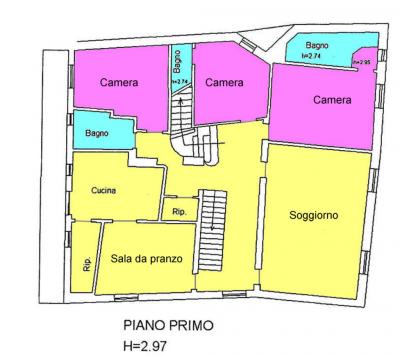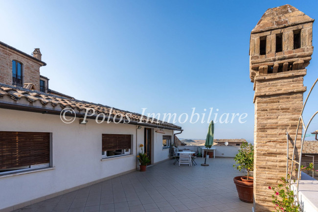 Large apartment available in the historic center of Fermo, near the amazing Piazza del Popolo and art gallery, it is located on the upper floor of a two family block. Elegantly restructured with a range of materials that include natural stone and parquet flooring. The overall space, which is spread across two floors, covers 370 square meters. The bottom floor is 200 sqm with a welcoming hallway that leads off to various rooms such as the dining room, a large live-in kitchen decorated with Vietri tiles which looks out onto a large, 16 sqm balcony with a pantry area. The double living room has a stunning fireplace and the sleeping area is composed of three double bedrooms, two with ensuite bathrooms and a third bathroom as well as a well-sized storage closet.