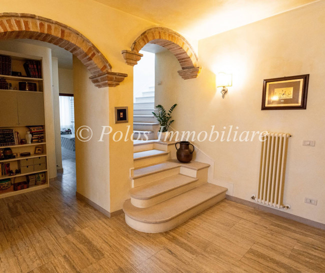 A beautiful stone stairwell leads up to the upper level covering 130 sqm which boasts three original beams and where there is a lovely living space, a second kitchen, two bedrooms, two bathrooms and various vestibules. From here you can access a stunning 70 sqm terrace which offers an incredible view of the Conero, the sea and the historic center.