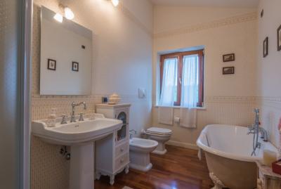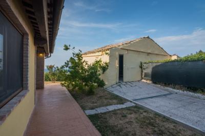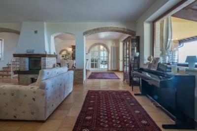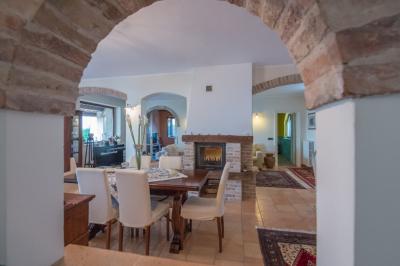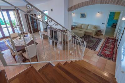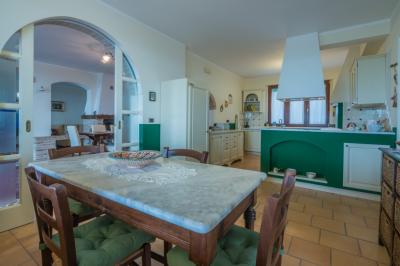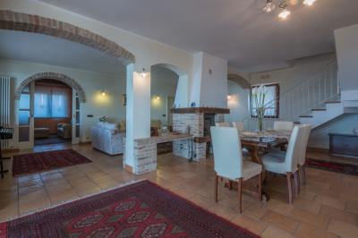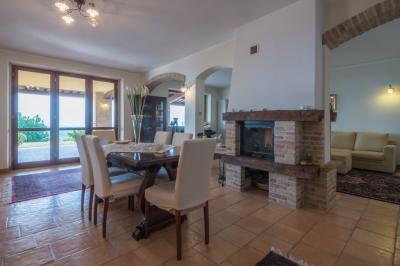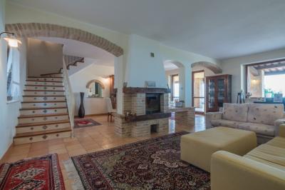 Il piano terra di mq. 160 si compone di ampio salone con camino, sala tv e lettura, bagno, sala da pranzo con cucina, dispensa e lavanderia attigua; il tutto arricchito dal porticato di mq. 100 con travi in legno a vista, pavimento in cotto; comoda scala interna di collegamento al piano primo della superficie di mq. 100 con reparto notte composto da un LUMINOSO living disimpegno, camera matrimoniale servita da esclusivo bagno e cabina armadio, camera doppia, terzo bagno, cameretta. La camera matrimoniale è servita da un ampio e panoramico terrazzo da cui è possibile ammirare il litorale fermano fino al Monte Conero.