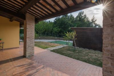 La proprietà è arricchita da uno splendido giardino della superficie di mq. 3.500 recintato e protetto ai lati nord ovest dal bosco di piante di medio fusto, ad est vi è il punto ideale per la realizzazione di una possibile piscina con vista panoramica.