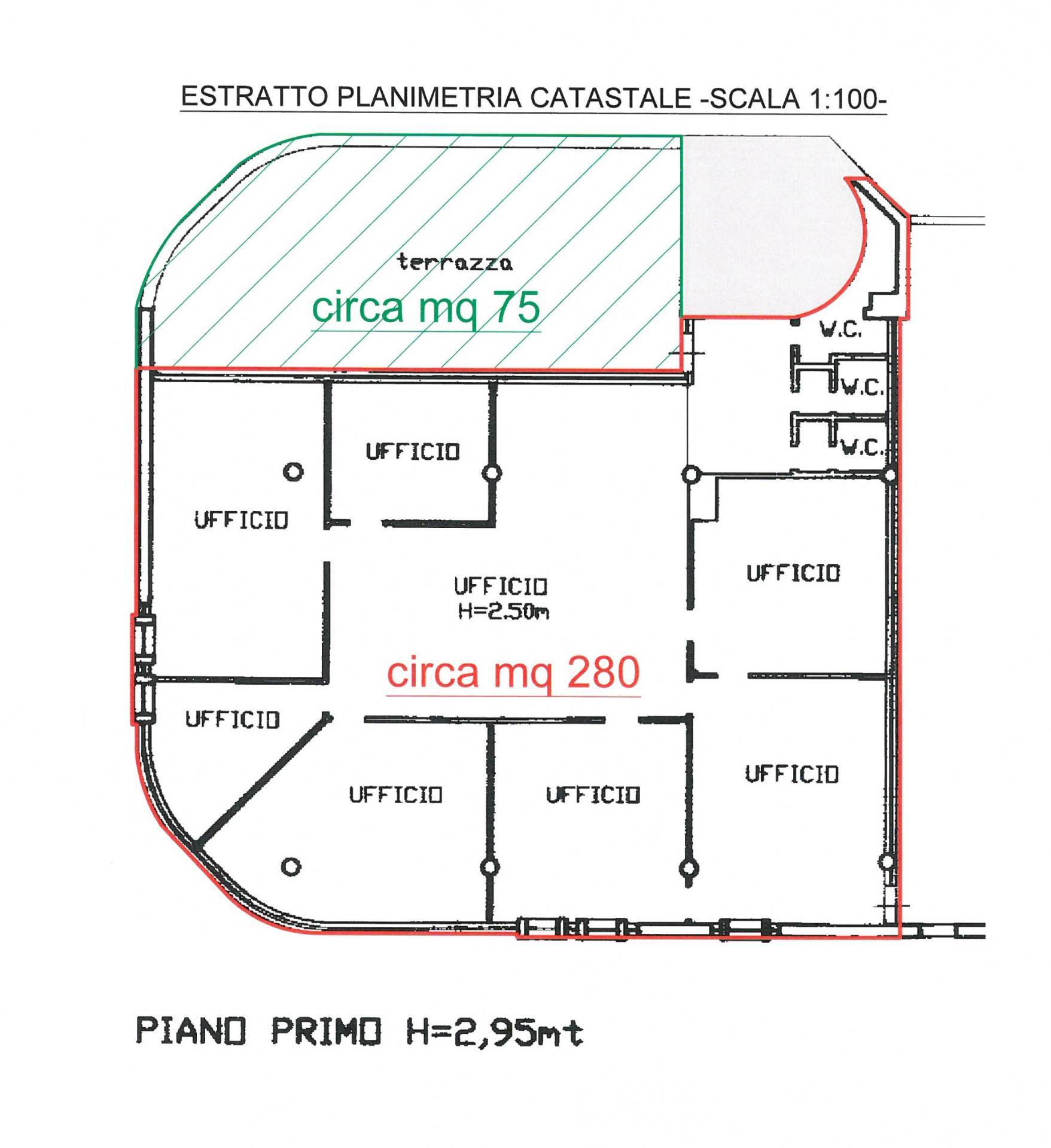 COMODO in posizione logistica unica e irripetibile di facile individuazione con affaccio SULLA STRADA PROVINCIALE affittiamo UFFICIO di ampia metratura ( 280 metri quadrati circa) posto AL PIANO PRIMO in palazzo commerciale: composto da n. 8 vani finestrati con ampio salone di rappresentanza centrale, balconata sul lato parcheggio, tripli servizi, archivio, riscaldamento autonomo, climatizzato, soffitti di 2,95 metri, rifiniture di pregio. Ideale per studi professionali con area parcheggi a disposizione.