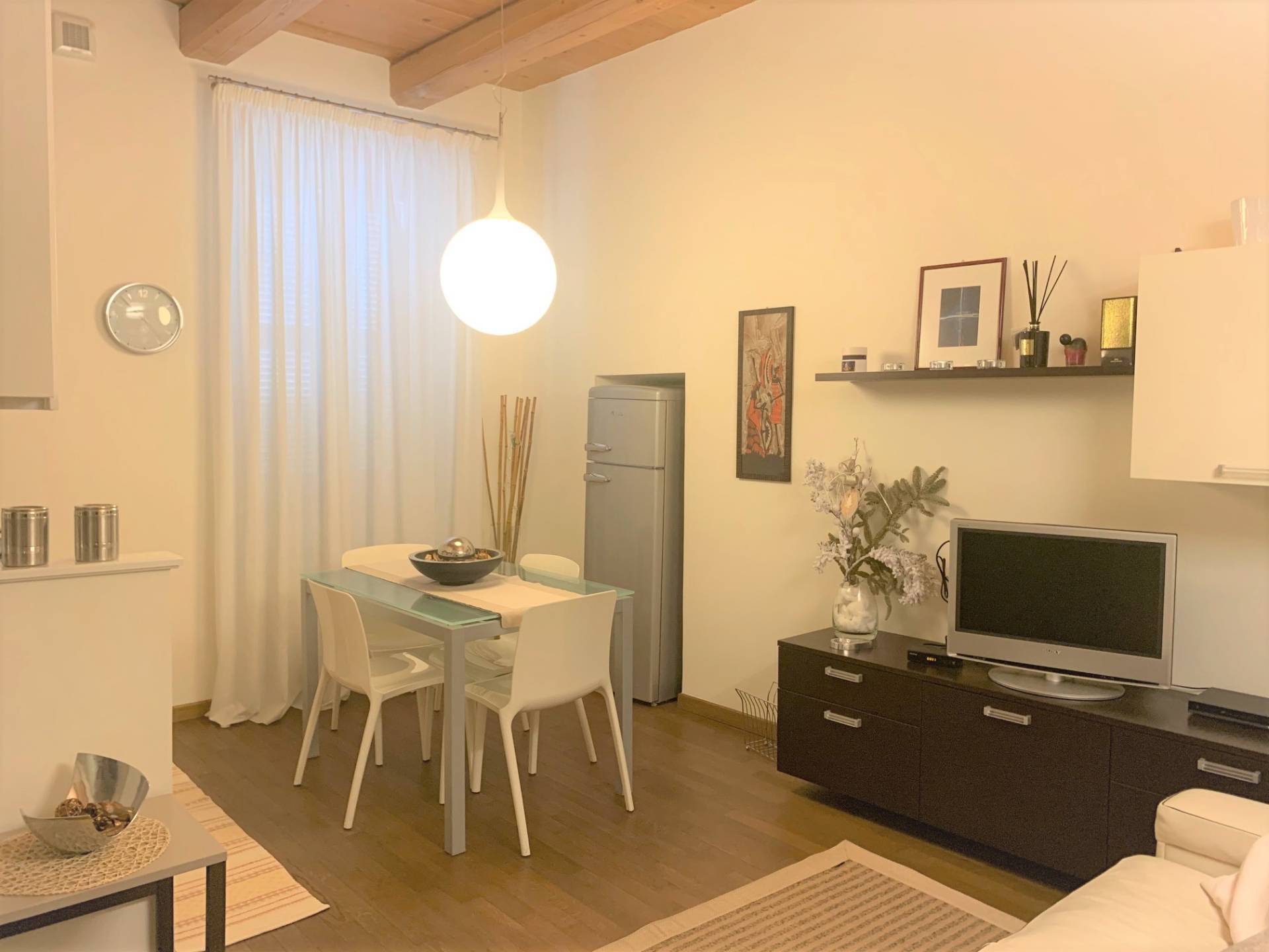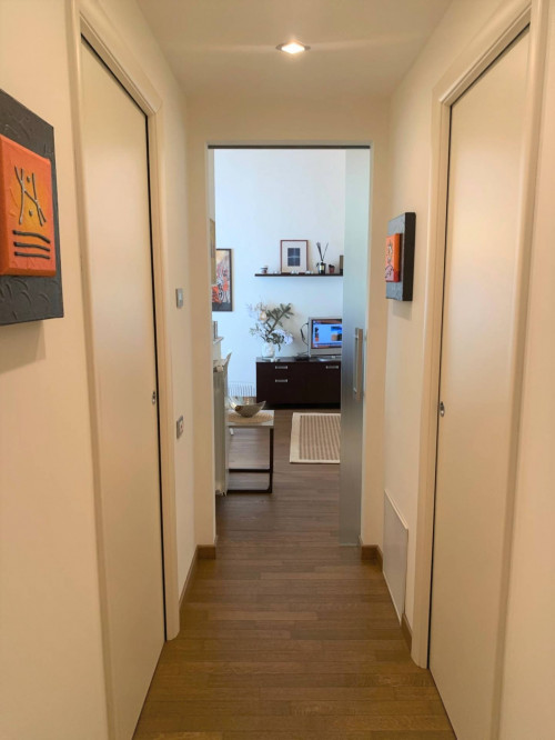 Al centro della storica cittadina di Fermo, ad un passo da Piazza del Popolo e da tutti i servizi, ma situata in contesto tranquillo e con facilità di parcheggio, grazioso e moderno Appartamento in palazzina completamente ristrutturata. La soluzione presenta una distribuzione degli interni razionalmente pensata sfruttando il più piccolo spazio, ottenendo ambienti confortevoli e funzionali, resi eleganti ed esclusivi grazie ai materiali di prima qualità, agli arredi moderni, al buon gusto ed allo stile che permane in ogni angolo della casa. Dall'ampio e soleggiato soggiorno con cucina a vista , si accede tramite particolare e moderna porta a vetri a scorrimento alla zona notte suddivisa in due camere, di cui una matrimoniale ,in servizi e locale ripostiglio, da cui è possibile ricavare un secondo bagno. Le finiture di pregio, il parquet che riveste l'intera unità , il mobilio e la ricercatezza dei particolari, rendono l'Appartamento elegante, raffinato e di classe. Un vero gioiello...nel cuore delle Marche!