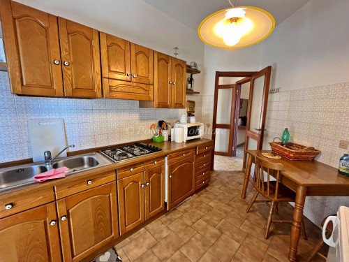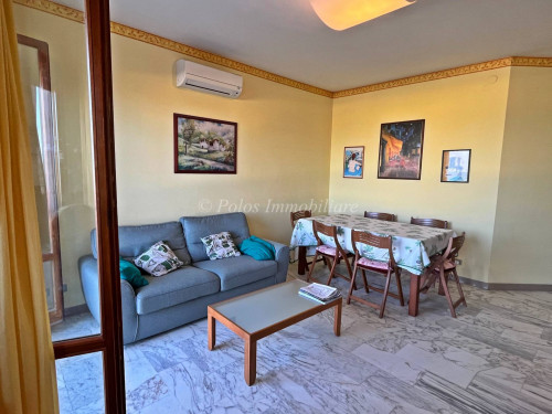 Posta al primo piano in palazzina con ASCENSORE, l'abitazione, luminosa e climatizzata, comprende: soggiorno con balcone perimetrale abitabile e VISTA MARE, cucina, n. 3 camere e DOPPI SERVIZI