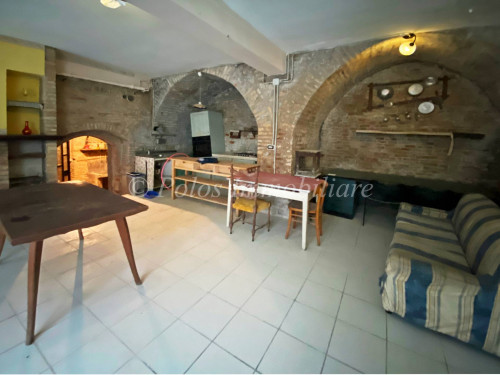 Il piano terra si presenta con una taverna open space completamente ristrutturata ma che ha mantenuto la tipicità del borgo marchigiano attraverso un'opera di ristrutturazione minuziosa, oltre a questo ambiente il piano terreno possiede tre cantine di diverse dimensioni, un caratteristico pozzo, un accessorio storico ed esclusivo tutti dettagli che confermano la storicità della proprietà presentata.