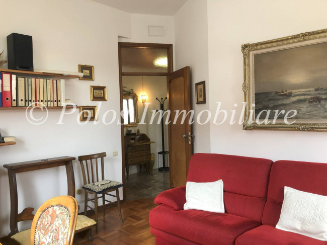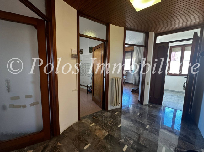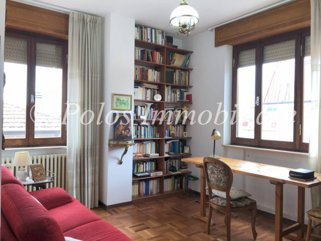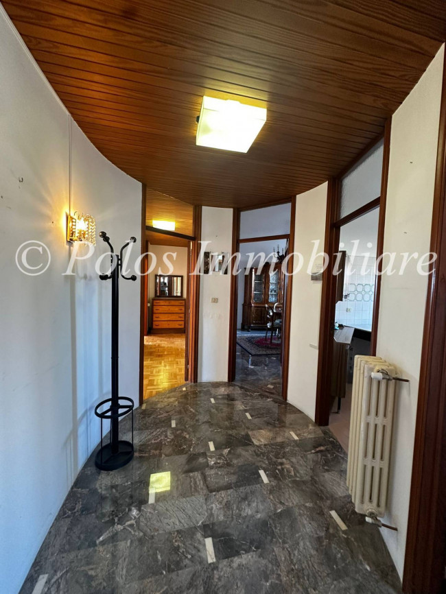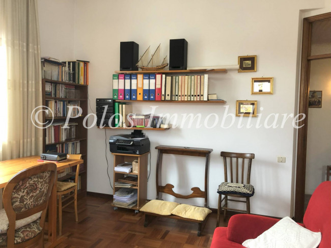 Panoramica e luminosa, l'abitazione, esposta su quattro lati, presenta locali distribuiti equamente tra zona giorno, con cucina abitabile, soggiorno ed elegante studio, e zona notte, pavimentata in parquet, con n. 3 camere da letto matrimoniali, oltre al bagno con doccia e ad un doppio disimpegno.