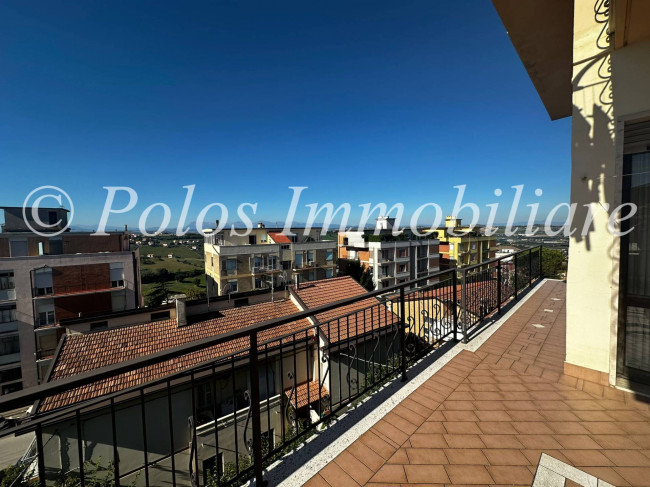 Un terrazzo perimetrale di mq. 25 con vista sui monti Sibillini e una comoda corte condominiale completano la proprietà, conferendo valore aggiunto all'immobile.
