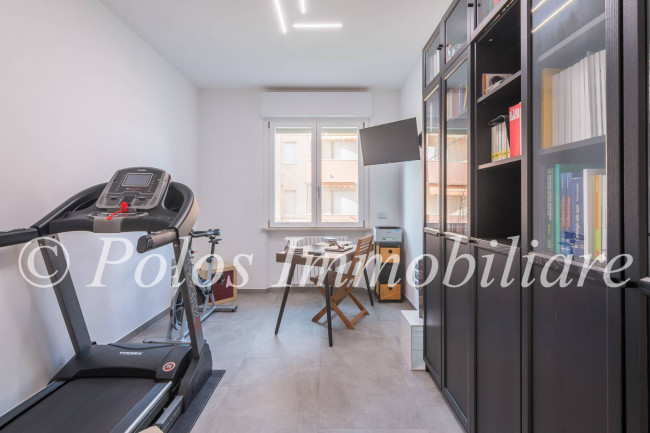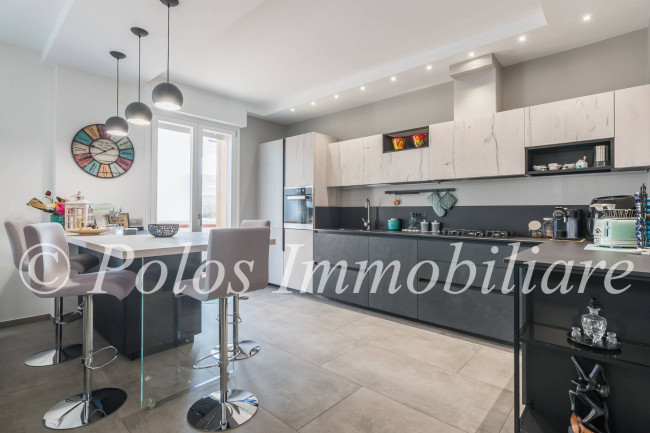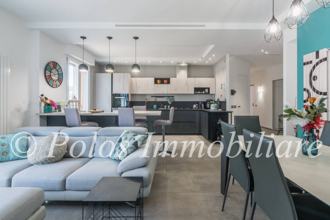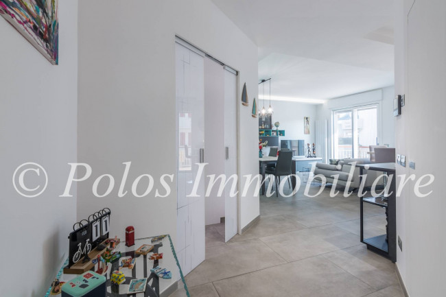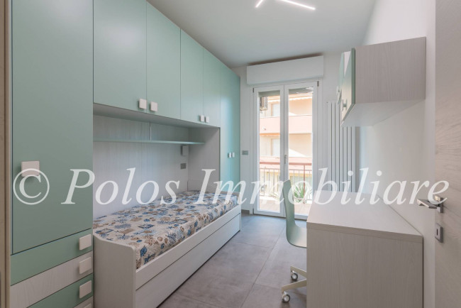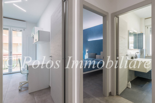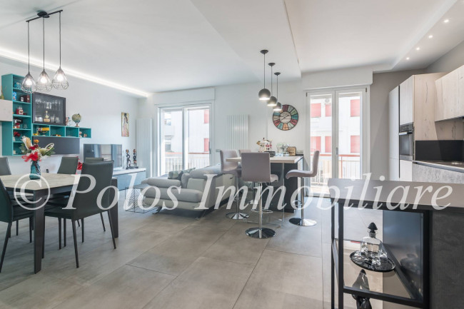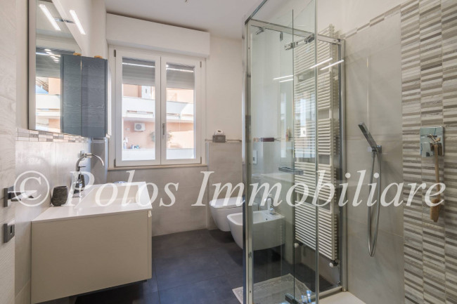 La soluzione, spaziosa ed accogliente, si compone di disimpegno, ampia zona giorno con cucina a vista e penisola, n.3 camere da letto, di cui una matrimoniale con cabina armadio a accesso su balcone esposto ad ovest, doppi servizi finestrati e ripostiglio, oltre ad uno spazioso balcone abitabile esposto ad est.