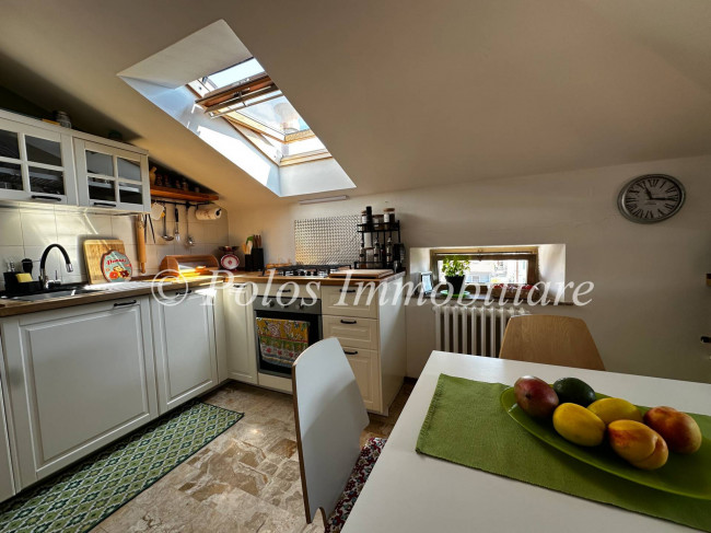 In prossimità del centro, di tutti i servizi e a poca distanza dal mare, vendiamo luminosa mansarda di 90 mq., posta al terzo ed ultimo piano di una palazzina senza ascensore. La soluzione, ristrutturata e dotata di riscaldamento autonomo, si compone di ingresso su disimpegno, ampia zona giorno, cucina abitabile, due comode camere e doppi servizi.