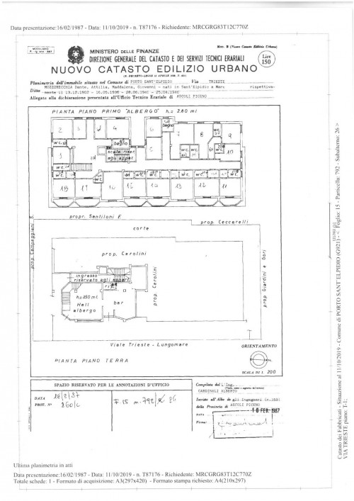 LUNGOMARE CENTRO. Splendida vista mare. Attività alberghiera al piano terra rialzato e primo di palazzina in ottime condizioni. Composto da piano terra di mq. 90 con ingresso, reception, sala per thè, colazioni ed intrattenimento. Tramite scala interna si accede al piano superiore di mq. 500, fornito di n. 18 camere climatizzate e relativi servizi. Luminoso, solare, finemente arredato con materiali di buona qualità. Stanze complete di ogni confort . L'immobile usufruisce della terrazza da cui è possibile godere la vista sul mare e della spiaggia. La struttura in buone condizioni e l'eccellente posizione centrale in prima fila mare in località turistica lo rendono un ottimo investimento , anche in conseguenza della clientela numerosa già acquisita negli anni di attività. Si vende completo di arredi ed accessori.