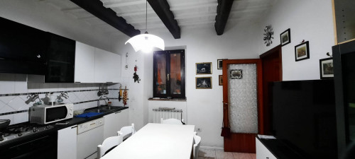 L'ingresso da via Mazzini consente di accedere alla zona giorno, sita al piano terra e comprensiva di cucina abitabile con travi a vista e pratica dispensa retrostante. Al piano primo, l'ampia zona notte è raggiungibile attraverso la caratteristica scala, ed è composta da due camere da letto, di cui una matrimoniale e una cameretta, oltre al disimpegno e al bagno con doccia. Completano la proprietà un'utile soffitta abitabile che offre ulteriori spazi personalizzabili e un introvabile box auto provvisto di lavatoio in pietra e cantina retrostante.