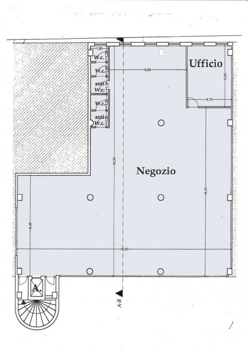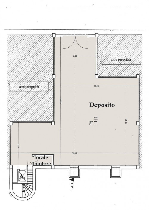 L'unità principale è suddivisa in negozio, ufficio e i servizi per un totale di 306 mq mentre il deposito di 236 mq ha una comoda rampa di accesso per il carico/scarico.